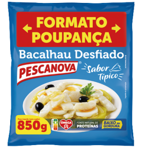 O Bacalhau Desfiado Pescanova é preparado a partir do melhor Bacalhau. Este tem o sabor característico do bacalhau, sem pele e sem espinhas*, e apresenta-se no ponto de sal, pelo que não necessita da sua adição na confecção.