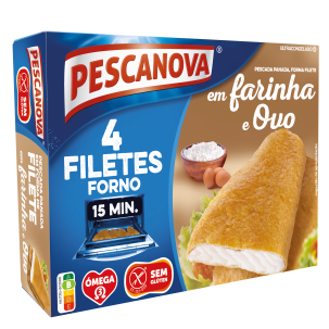 Pescada (64%), ovo inteiro líquido (12%), óleo de girassol, farinha de milho, água, ovo em pó, sal, espessante (goma guar), levedantes químicos (difosfatos, carbonatos de sódio), estabilizadores (metilcelulose).