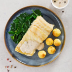 4. Servir os Lombos de Bacalhau sobre os bimis e mini-milhos.