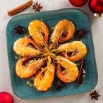 3. Por fim, acrescentar o Camarão, 3 a 4 pés de salsa, temperar com sal, regar com 200 ml de água quente com a polpa de tomate misturada, acrescentar um fio de azeite, tapar e cozinhar por mais 7 a 8 min aprox. (agitando o tacho a meio).