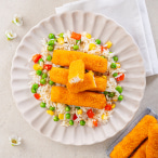 Confeccione as Barrinhas de Pescada Panada no forno conforme as instruções da embalagem.
