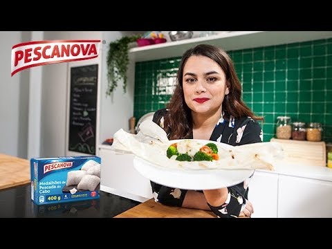 2. Corte retângulos de papel vegetal e disponha em cada um: um fio de azeite, 1 dente de alho laminado, 3 tomates cereja, 3 cebolinhas cortadas ao meio, 4 ou 5 pequenos floretes de brócolos e um Medalhão de Pescada, tempere de sal e pimenta preta moída na hora, salpique com cebolinho picado grosseiramente em abundância e um fio de azeite generoso a finalizar.
