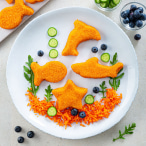 Surpreender os mais pequenos com uma refeição colorida e equilibrada que combina fruta, massa e Peskitos crocantes.