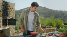 3. Servir o Salmão e a cebola assados salpicados com raspa de limão, acompanhados com a salada fresca de Verão.