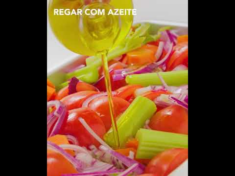 3. Dispor o tomate, cenoura, cebola e aipo num tabuleiro, regar com azeite e vinagre, salpicar com um pouco do sal e com açúcar. Levar ao forno durante 20 minutos.