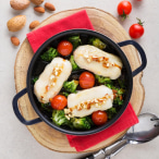 2. Coloque as tranches temperadas com sal, pimenta, alho, sumo de limão e coentros e regue-as com o leite. Espalhe pedaços de manteiga por cima e polvilhe com o queijo e com o pão ralado. Leve ao forno a gratinar.